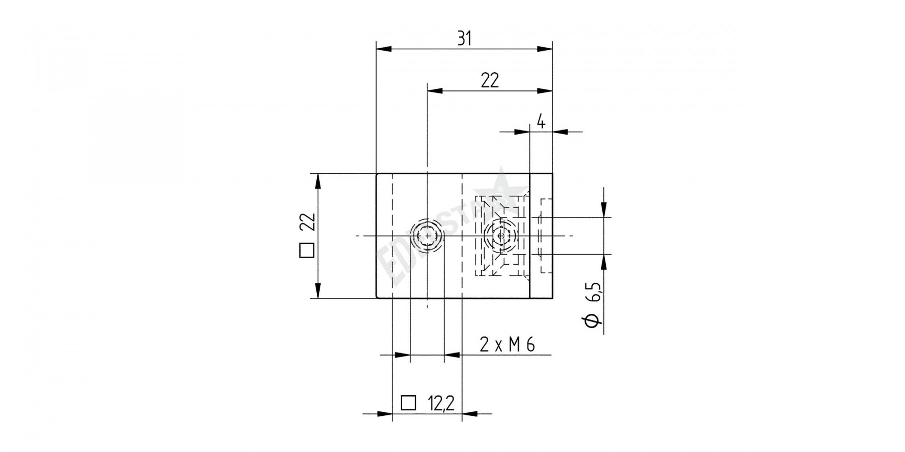 Držák příčné tyče, 12,2 mm, na trubku O 12x12 mm