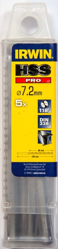 Delená špička s uhlom 118 ° prináša vyšší výkon a veľmi dobré vystredenie. Presné začatie vŕtania, nie je nutné otvor predvŕtavať ani používať pilotný vrták. Rýchlo preniká do materiálu, je potrebné menej úsilia/tlaku. Vrták HSS PRO disponuje nižším rizikom prasknutia pri vŕtaní aj s menším priemerom vďaka vysokej pružnosti. Optimálny výkon pri vŕtaní platí aj za nepriaznivých podmienok. Nízka odchýlka a vysoká sústrednosť prináša maximálnu presnosť. Vrták je vyrobený z vysoko odolnej rýchloreznej ocele. Vrták s povrchovou úpravou - leštený strieborný povrch
