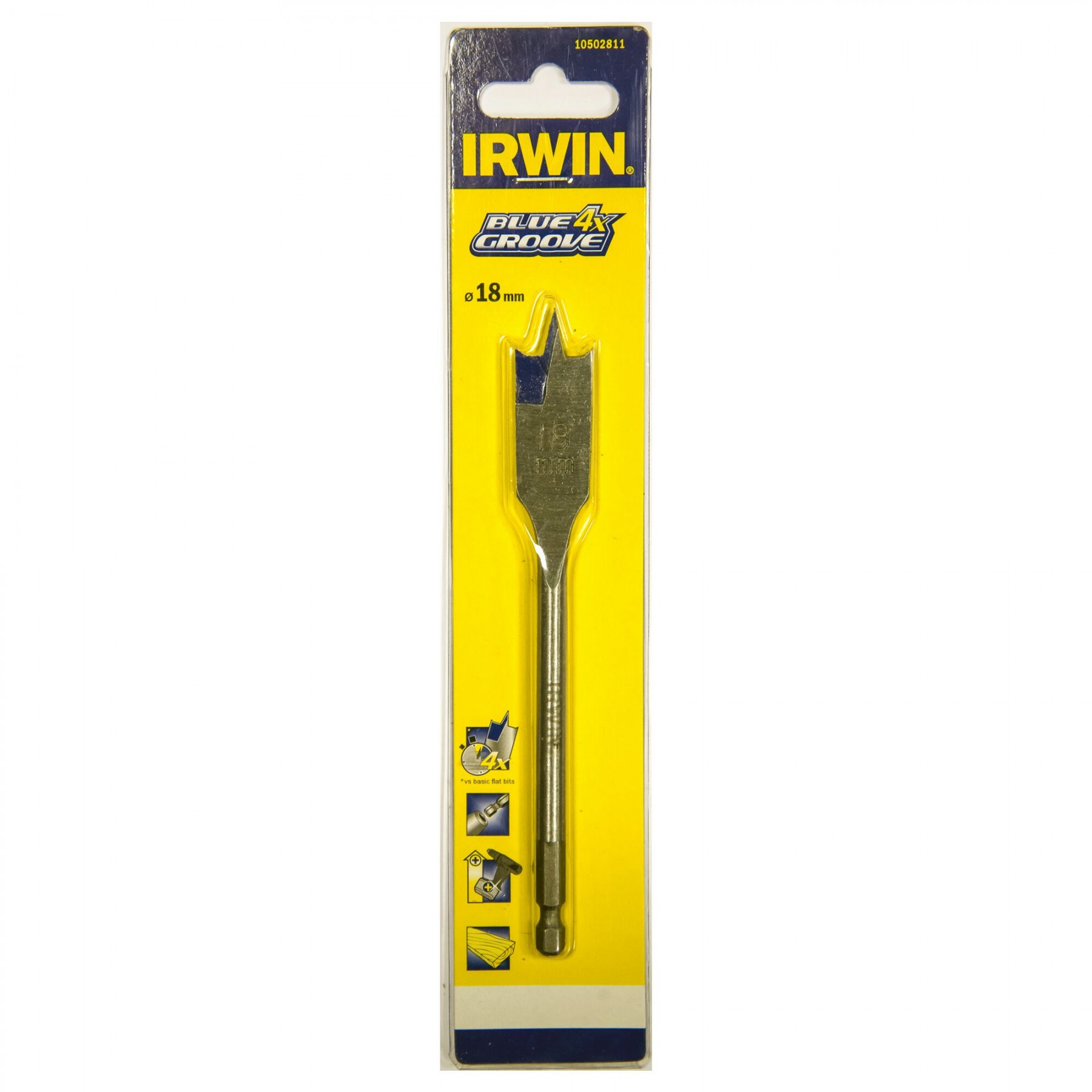 4 x rýchlejšie ako štandardné ploché vrtáky. Dvojité predrezávacie hroty opisujú vonkajší okraj otvoru a znižujú poškodenie. Silnejší brit pre dlhšiu životnosť. Špička a brit Blue Groove pre rýchlejší odvod odvŕtaného materiálu. 1/4" / 6 mm šesťhranná stopka bráni preklzovaniu.