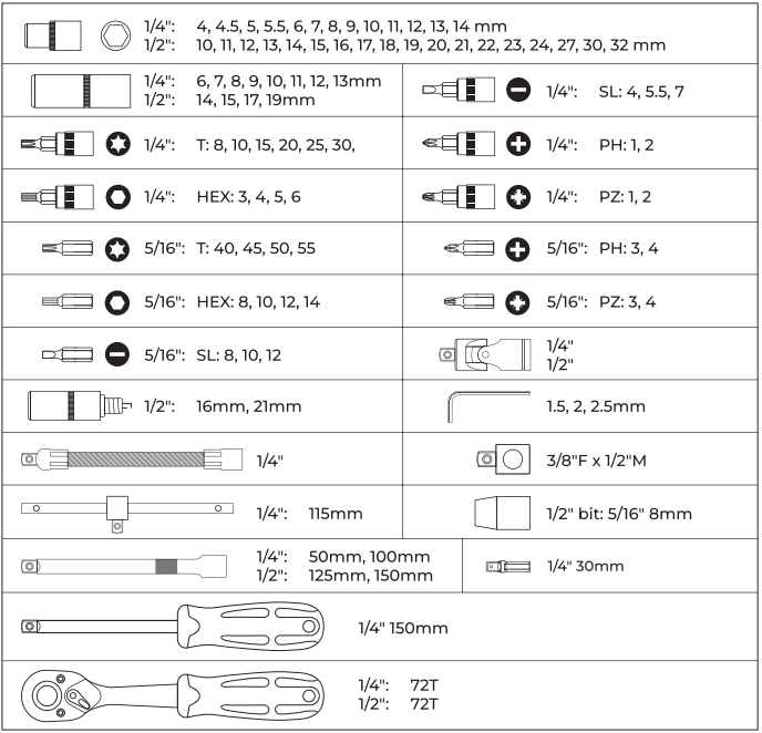 Klíč nástrčný 1/2" 1/4" sada 84 ks s ráčnou 90zubů101,10 €s DPH83,55 € bez DPHSkladom 5 ks