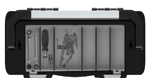 • veľký organizér s priehradkami s odolným polykarbónovým vekom