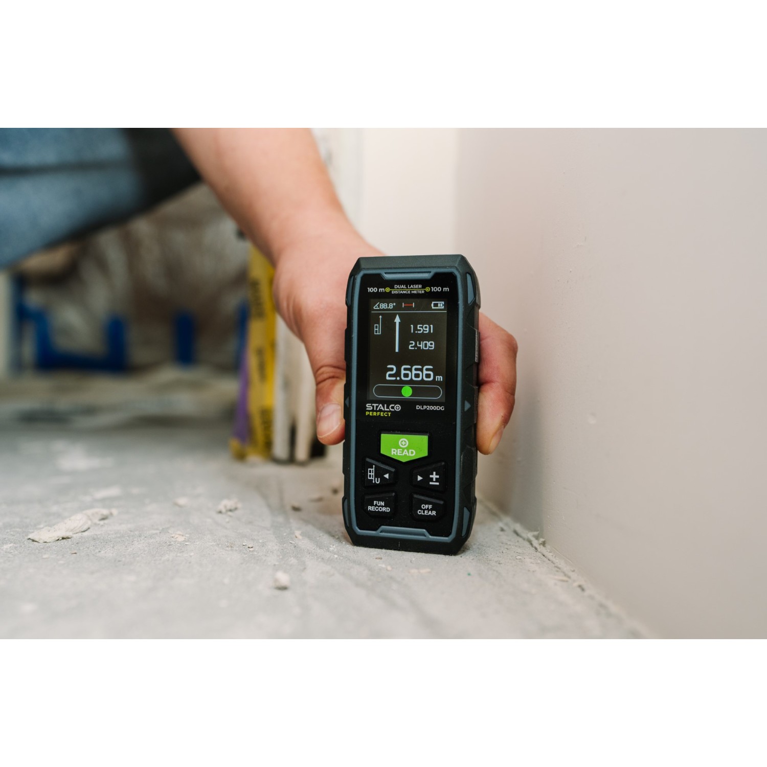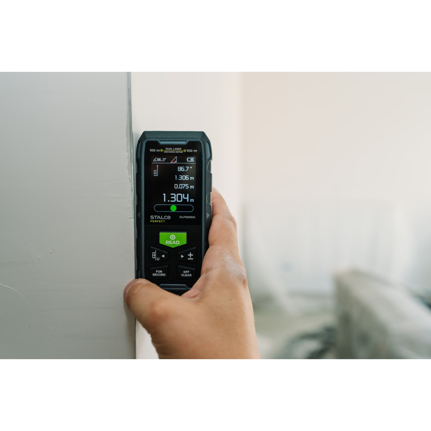 Vďaka použitiu dvoch zelených laserových lúčov v dvoch smeroch umožňuje DLP200DG vykonávať merania z rôznych pozícií, ako je stred miestnosti alebo výška, bez nutnosti ohýbať sa, čo výrazne zvyšuje komfort práce.