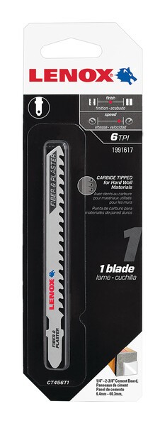 Je určený na rezanie cementových dosiek, sklených vlákien a plastov. Karbidové zuby sú navarené, aby sa zabránilo strate zubov, čo zaručuje dlhú životnosť pílového listu. Každý zub je presne brúsený, aby boli zaručené rýchle rezy v ťažkých materiáloch. Pílový list do elektrických priamočiarych píl CT456T, 101,6 x 9,5 x 1,3 mm, 6TPI Použitie: sklené vlákna a sadrokartón 6,4 - 19,1 mm, cementové dosky 6,4 - 60,3 mm Dĺžka pílového listu: 101,6 mm Počet zubov na palec: 6 Stopka: T Počet ks v balení: 1