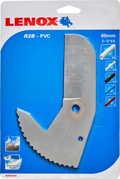 Patentovaná vrúbkovaná čepeľ Lenox z nerezovej ocele požaduje o 25% menej sily na vykonanie rovného odrezania bez otrepov.