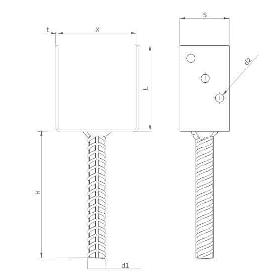 Príklad použitia: kotvenie drevených prvkov záhradnej architektúry ako sú: plotové stĺpiky, ľahké drevené konštrukcie, prelamované ploty, lamelové ploty, pergoly, altány. Nutná príprava betónového poteru alebo použitie chemickej kotvy SVA.