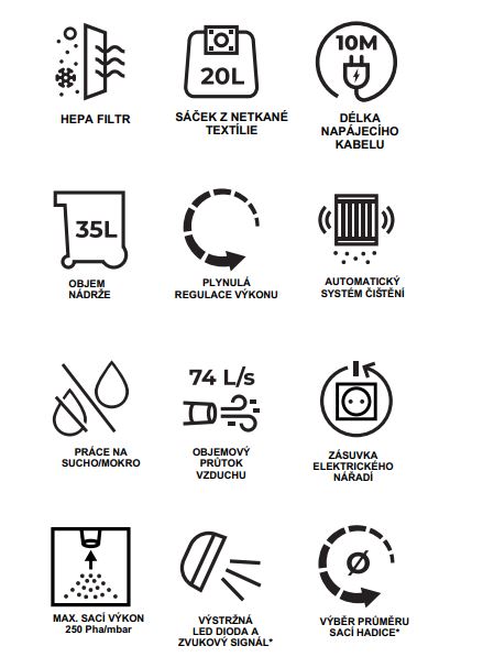 | Dĺžka sacej hadice | 2,5 m |